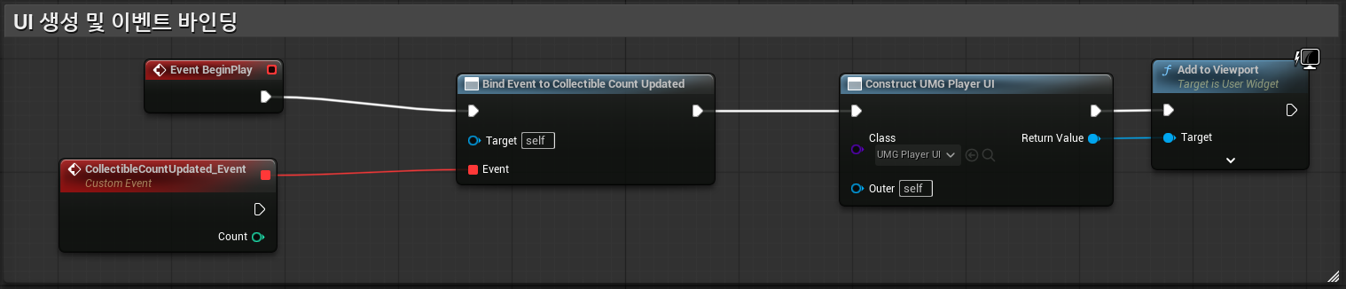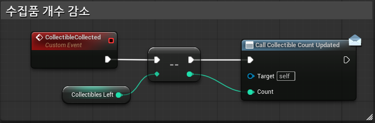 • 하나의 이벤트(Collectible 개수 변화)를 기반으로 UI, 문, 게임 로직이