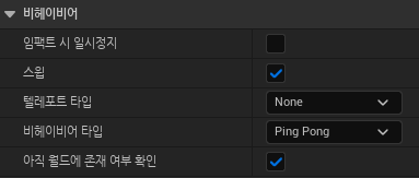 • Behavior Type(Loop Reset, Ping-Pong 등)을 선택