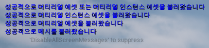 GEngine->AddOnScreenDebugMessage(-1, 3.0f, FColor::Blue, TEXT("성공적으로 머티리얼 에셋 또는 머티리얼 인스턴스 에셋을 불러왔습니다"));