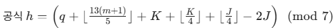 이를 해결하기 위해 독일의 수학자 크리스티안 첼러가 고안한 첼러의 공식(Zeller's congruence)을 도입했습니다.